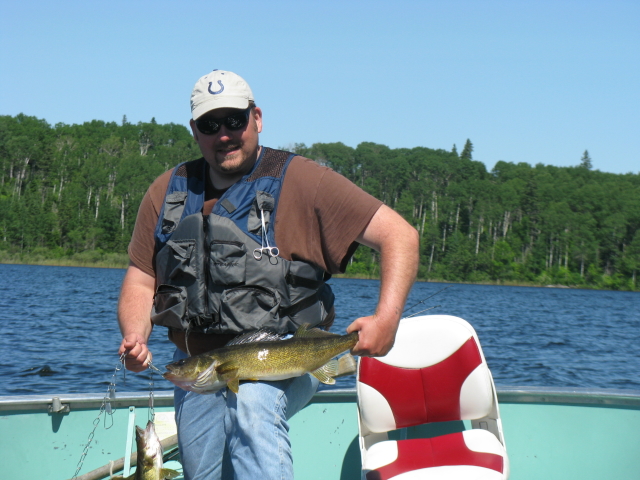 An old friend of mine was in camp last week too. Mark Zeese, who I used to work with in a former life (haha), was here with two of his sons this year along with friends of the family. This being Mark’s second trip here with son Kerry, it sure was impressive to see them put the knowledge they gained last year about when, where and how to fish Wabaskang to good use. Let me tell you it paid off as they had a great trip with lot’s of fish and memories that will last a lifetime. That’s what it’s all about. Young Colin Curran, (my apologies Colin I can’t remember if you said you were 12 or 13), had a great start to his Canadian fishing experience catching and releasing a 25″ walleye and a 36″ northern pike. That sure never happened to me on my first fishing trip to Canada in 1986! Congrats young man, well done and looking forward to seeing you again next year , but I’m gonna warn you right now, I’m pulling for your big brother Griffin to outfish YOU next year!