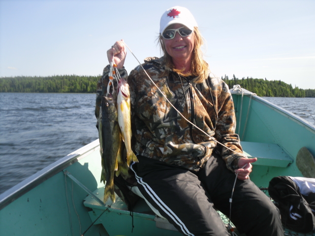 John Rand’s crew didn’t have nearly the success they have had in years past portaging the falls, but they more than made up for it with two adventure trips into Dowell Lake where they returned each day with impressive stringers of walleye and a few MONSTER perch. Unfortunately, it looks like water levels are already down too far to make that trip anymore. It was fun while it lasted.