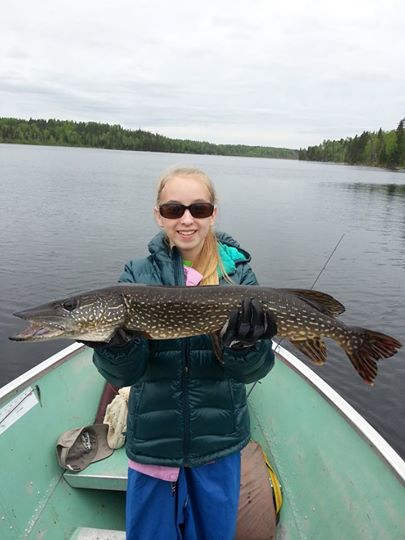 What a week of fishing on Wabaskang Lake it was! Outstanding walleye and pike fishing, excellent smallmouth bass and perch fishing and even a lake trout still caught above the Hobson Falls. Great multi-species fishing at it’s finest. Everyone in camp was a returning veteran ranging from our rookie groups of about 7 years with us to Bob Stromberg who was here for his 44th year with somewhere between 65-70 trips over that span. I am often asked “how is the fishing on Wabaskang today compared to long ago?” Well, if I use the Stromberg party’s 2015 results as a litmus test, I would have to conclude the answer to the question posed is “better than ever”. See, Bob’s crew of four, including one who had never fished Canada before, broke their all-time record for fish caught over Bob’s 44 years coming to camp. See back in 2009, the four guys set the bar with 1,222 fish caught over six days of fishing. This year with new guy (Tom) and apparently a lucky charm, they shattered the old record with 1.356 fish over the six days. That makes two groups so far this year that have boated well over a thousand fish for the week. Yes, the fishing on Wabaskang is doing very well thank you. Included in their catch were 11 northern pike over 30″ with the biggest being new guy Tom’s 41″ beauty. By the way, Tom left saying he sort of liked this Canada thing… Tom also had a 35″ pike that he released along with the monster 41″ fish.