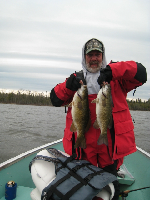 Although a lot of the midwest (including back home in Indiana) is experiencing weather much more like July with temperatures in the 90’s, I can assure you this week it still feels like May here in Ontario. Lot’s of rain, stronger winds, and today a few snow flakes mixed in for good measure have so far been the story of the week. Bet the guys from last week are glad they were here for the opener!  While pretty uncomfortable conditions for our guests while fishing, the walleye, pike and smallmouth really haven’t seemed to notice. Despite limited time on the water, guests are continuing to do extremely well with fish. Fortunately for us a 5 or 10 minute boat ride has them on excellent spots and they can fish a couple hours, limit out and be back to the warmth of their cabins.